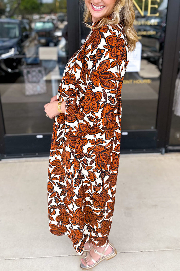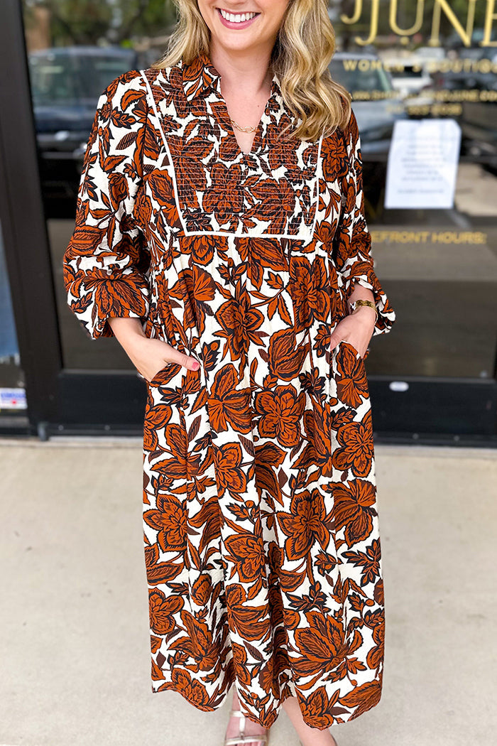 We're glad you've clicked on our new Casual Floral Pocket Dress as we're really into its casual vibes!Be effortlessly stylish in this Dress. Perfect for the fall season with a mix of rust and brown and black, this throw on and go dress is easy to style. Just add your favorite accessories and you're good to go!